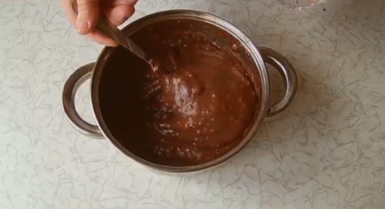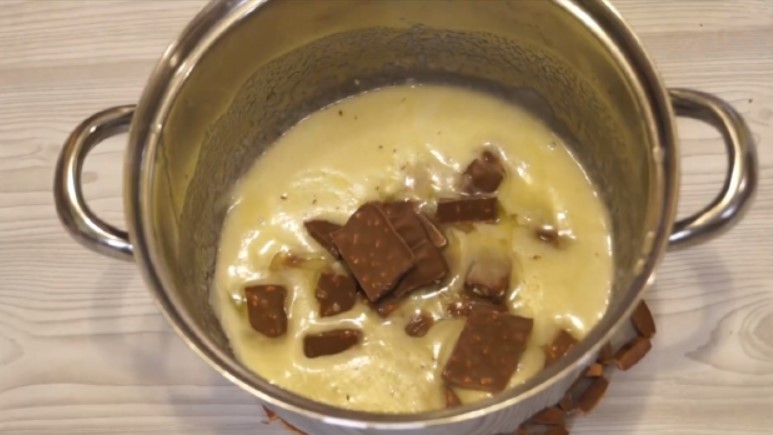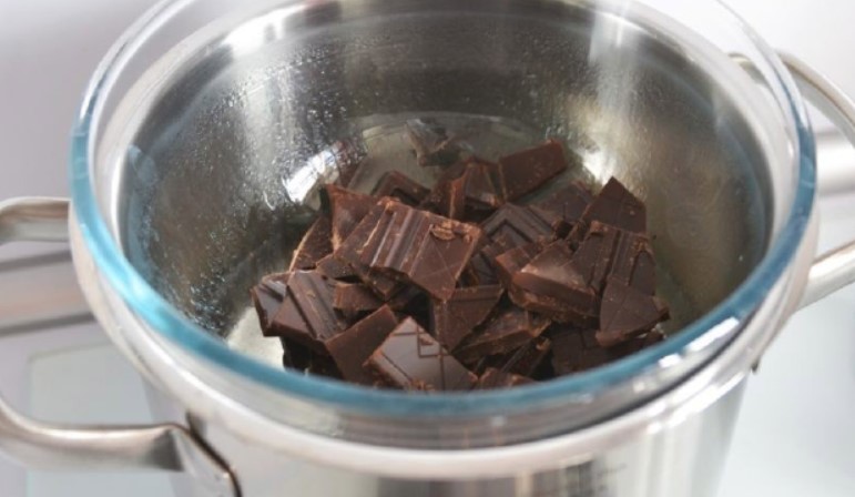 1. Необхідно розтопити Шоколад на водяній бані. Деякі господині роблять це в мікрохвильовці, на невеликій потужності. Я ж вважаю, що на бані виходить більш рівномірна маса, без підгорівших ділянок.
