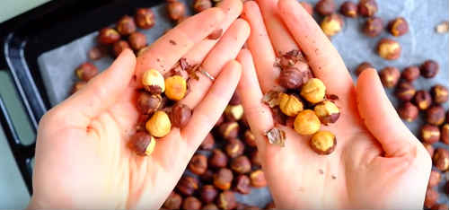 Остудіть горішки хвилин 10, потім швиденько очистіть їх від лушпиння. Щоб зробити це без труднощів, беріть в долоньки по жмені, і перетирайте їх, лушпиння легко відпаде сама собою.