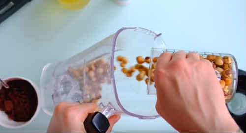 Засипте в чашу блендера, подрібніть на високій швидкості, отримавши горіхове масло.