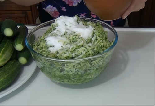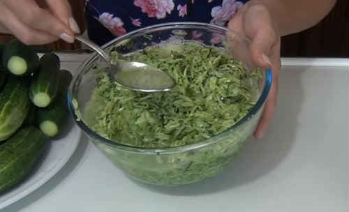 - Сіль – на літр натертої огіркової маси беріть 2 великі ложки.