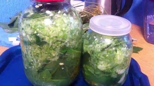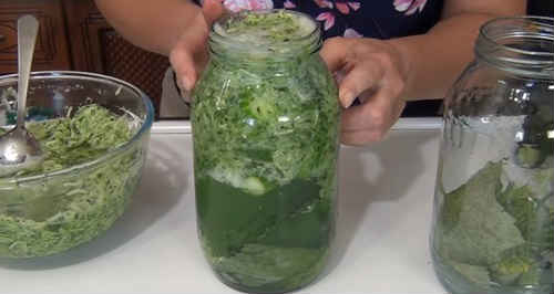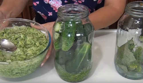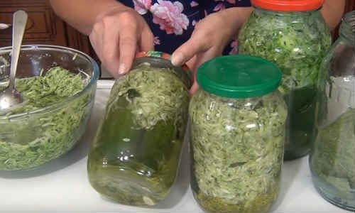 Іноді буває, що натерта мезга осіла, зверху в банку звільнилося місце. Зробіть нову порцію тертих огірків, доповісте їх у ємності. І знову закрутіть кришкою.
