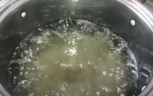Залийте заготовку окропом. Залиште настоюватися і прогріватися на 10 хвилин. Потім вилийте окріп.