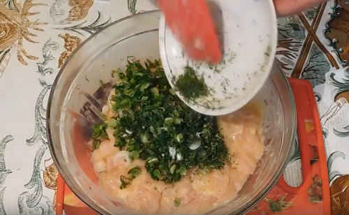 Якщо надумаєте класти зелений лук, поріжте його та відправте в миску. Знову перемішайте вміст і приступайте до смаження.