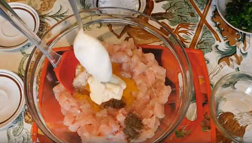 Рубані оладки з курячої грудки з майонезом і крохмалем – рецепт з фото