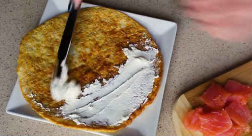 Дуже смачний овсяноблин з червоною рибою і сирним кремом