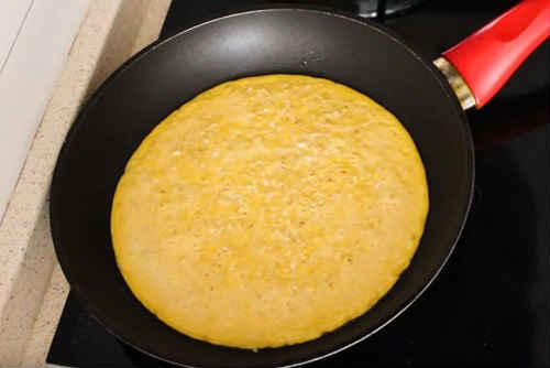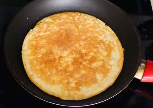 Смажте приблизно 3 хвилини, потім акуратно переверніть млинець.