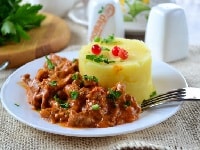 Класичний бефстроганов готується з яловичини, тому й має приставку «бет», що означає в перекладі з французького