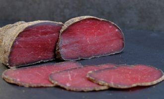 Бастурма готується зі свіжої яловичої вирізки. М’ясний делікатес має приємний аромат і пікантний смак.
