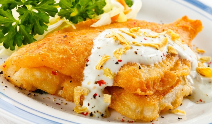Філе сома в сирному клярі, на підкладці з яблучно-сметанного соусу — це просто казка. М’