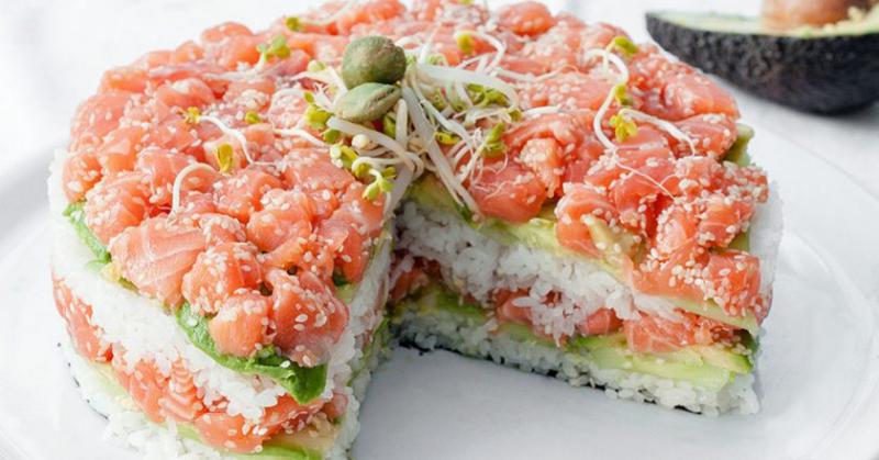 Представляємо вам рецепт нового торта-салату. Він особливо сподобається всім любителям суші та ролів.