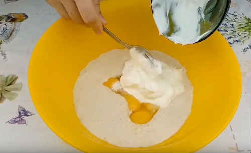 Коли дріжджі запенятся і почнуть реагувати, вбийте яйця.