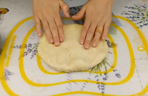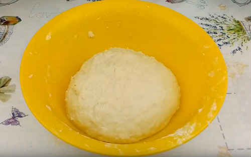 Замісіть тісто. Тут потрібно враховувати, що маса буде дуже м’якою, стане липнути до рук — це нормальний стан. Коли замісіть повністю, зберіть масу у грудку, підлийте трохи соняшникової олії. І ще раз добре попрацюйте руками.