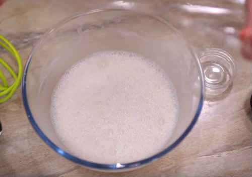 Для приготування опари зігрійте воду. Не робіть занадто гарячою, до 40 о С буде достатньо, інакше дріжджі загинуть. Засипте цукор, ванілін, розкришите в миску пресовані дріжджі. Розмішуйте, поки дріжджі не розчиняться.