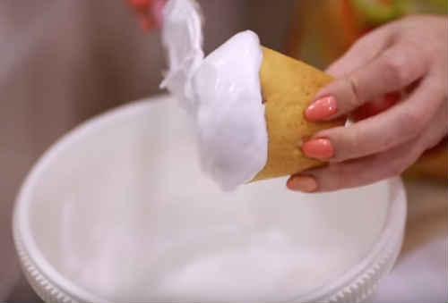 Поки великі паски допекаются, зробіть глазур. Спочатку збийте міксером лимонний сік з двома білками.