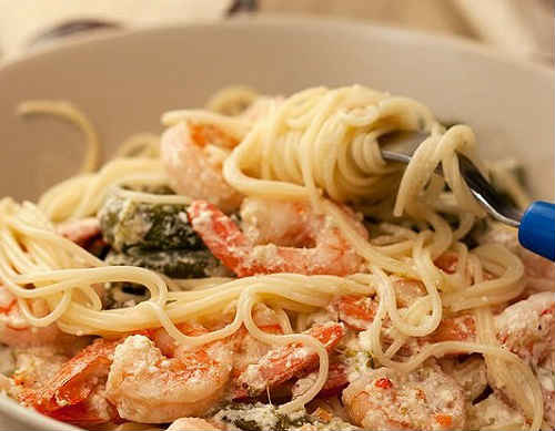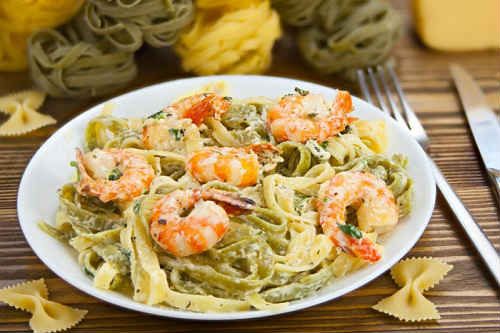 Паста з креветками і сиром під вершковим соусом