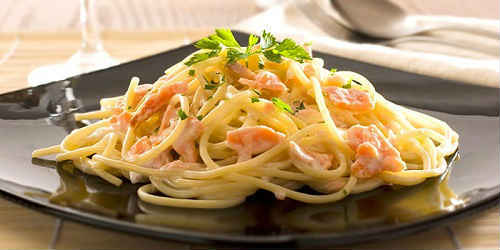 Італійська паста фетуччини з креветками з лососем