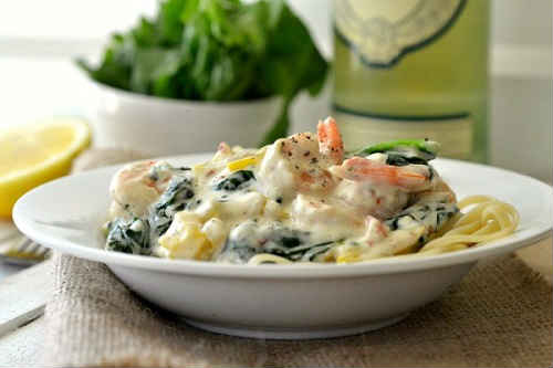Паста з королівськими креветками і шпинатом у вершковому соусі