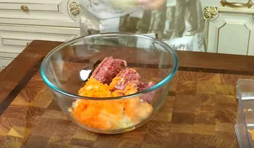 Аналогічно вчинити з цибулею. Це самий неприємний момент, але його потрібно пережити, оскільки цибулю бажано перетворити в пюре, щоб у фарші він був не помітний.