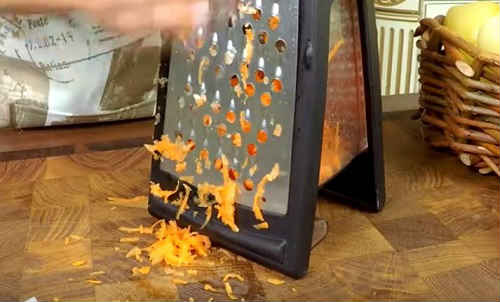 Потріть моркву на середній тертці. Потріть, або роздушіть пресом часникові часточки.