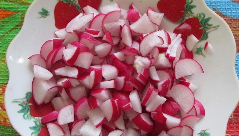 3. Редиска також позбавляється від хвостиків і дрібно нарізати.