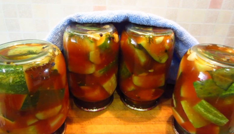 Смачні на смак огірочки, закриті в томатному маринаді оцінить не тільки ваша родина, але й гості, що прийшли на чашку чаю.