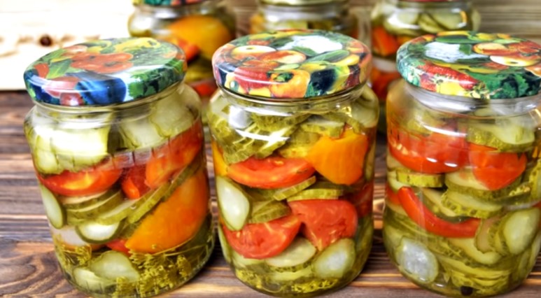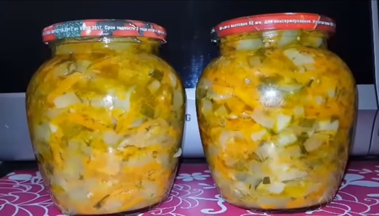 Також можна закуску не розкладати по склотарі, а проварити її в каструлі, і тільки після цього розкласти і закатати. Але в такому випадку смак овочів буде не таким чудовим, як після стерилізації.