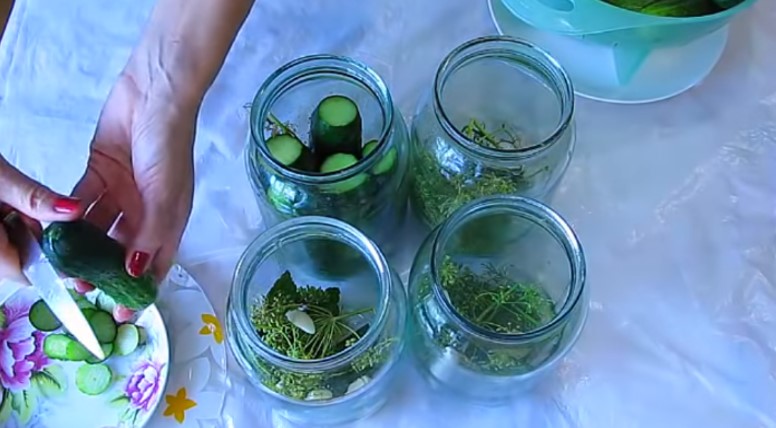2. Миті огірочки перед приготуванням повинні бути витримані в холодній воді близько 2 годин. Після цього у овочів обрізаємо кінчики і щільно заповнюємо тару.