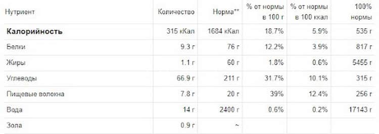 Пропонуємо детально ознайомитися з інформацією про харчову цінність 100 грам сухої перлової крупи.