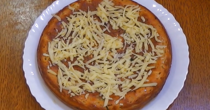8. Отриманою сумішшю заллємо заготівлю та надіслати заповнену форму на півгодини в розігріту духовку до 180 градусів.