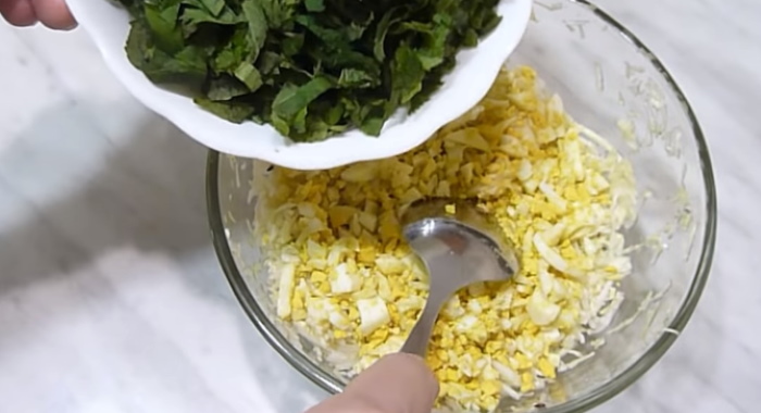 За бажанням начинку можна урізноманітнити додатковими інгредієнтами, у вигляді варених яєць, зелені або спецій.