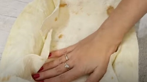 Закрийте начинку краями коржі конвертом.