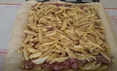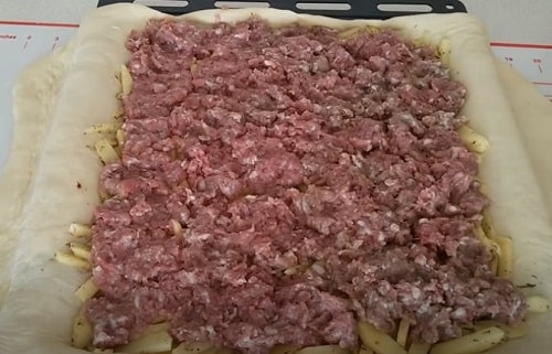 Листковий пиріг з м’ясним фаршем і картоплею в духовці