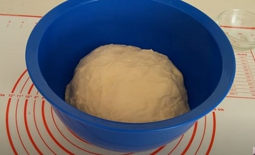 Зробивши повний заміс, зберіть масу в ком, помістіть в миску. Прикрийте харчовою плівкою або полотенчиком. Залиште для першого підйому в теплому місці рівно на годину.