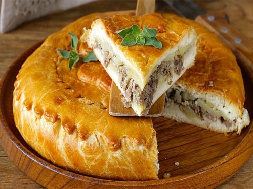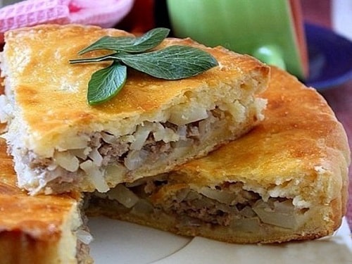 Пироги печуть по всьому світу, багато господинь впевнені, що знають ідеальний рецепт випічки і щедро діляться ним з подругами. Звідси достаток варіантів приготування м’ясних пирогів загалом і з картоплею, зокрема. Роблять закриті і відкриті заливні пироги, ставлять тісто на кефірі, сметані, дріжджах. Крім традиційних м’яса і картоплі, до начинки додаю гриби, цибуля, сир, капусту. У деяких національних кухнях є свої фірмові рецепти, які уславили народ на весь світ. Мова йде про татарською Белеш і осетинських пирогах Фыджин.