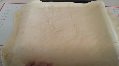 Розкачайте тісто шаром за розміром трохи більше вашого листа (приблизно 30 на 40 см).