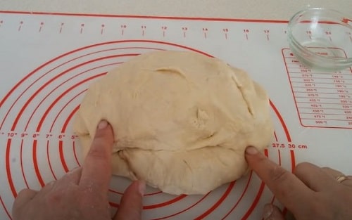 - Поділіть тестову масу на дві нерівні частини. Розкачайте, надавши форму овалу.