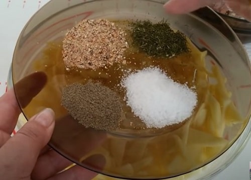 - Сушений часник, кріп, сіль, мелений перець – по щіпці.