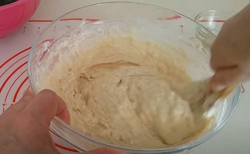 - У кілька прийомів введіть борошно. Зробіть досить густий заміс. Маса вийде досить рідкою.
