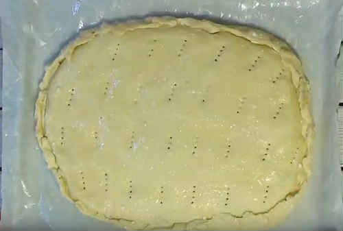 Підстеліть на дно дека промаслений пекарську папір. Наведіть на неї пласт.