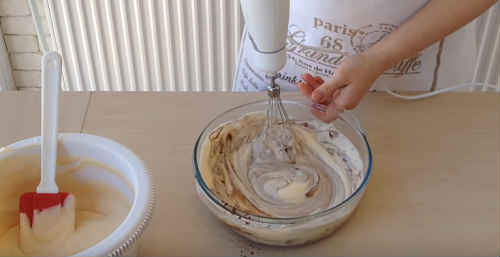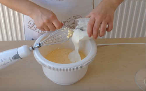 Наступного додається сметана. Знову попрацюйте міксером.