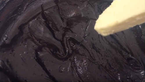 Перемістіть миску на водяну баню. Помішуючи, дочекайтеся закипання. Потримайте після того, як вода закипить, 5-8 хвилин, цього достатньо, щоб глазур зварилася. Додайте шматочок вершкового масла, розмішайте. Якщо масло розтопилося – знімайте з лазні. Можна обійтися без лазні, просто зваривши в каструльці на плиті, але за правильної технології робиться на бані.