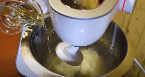 Продовжуючи працювати міксером, додайте рослинне масло. Посоліть суміш.