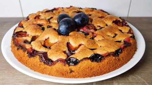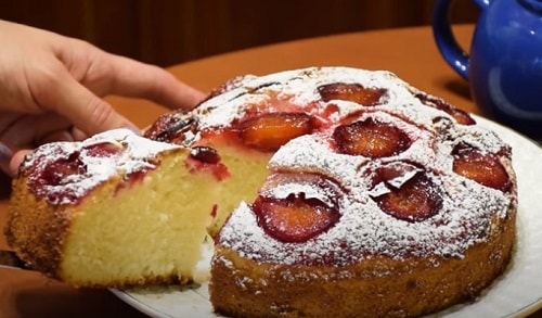 Пиріг зі сливами на кефірі — простий рецепт з манкою