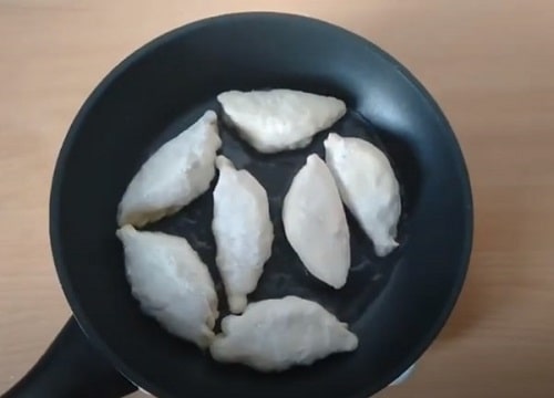 - Викладіть в розпечений жир. Посмажте пиріжки спочатку знизу, після переверніть. Про готовність підкаже красива рум’яність з обох сторін.