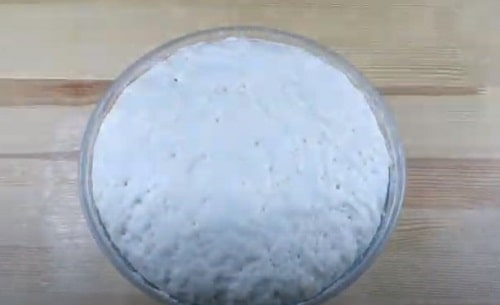 - Зробіть заміс, працюючи спочатку ложкою, а потім, коли маса стане крутою, руками. Сховайте під рушник. Почекайте, коли маса збільшиться в два рази.