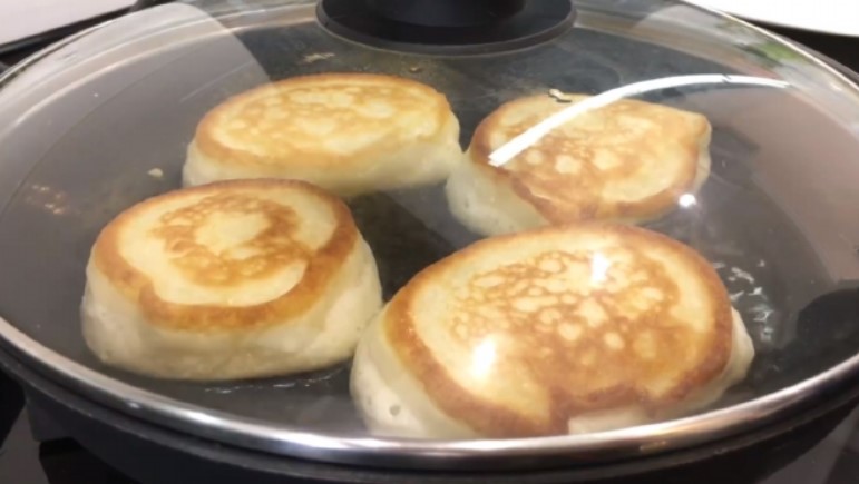 4. Акуратно збоку набираючи тісто на ложку, сформувати оладики. Підсмажити їх на середньому вогні. Якщо пампушки виходять надто високими і не встигають пропікається, можна накривати кришку, але не повністю. Необхідно залишати щілину, щоб усередині сковороди не з’явився конденсат.