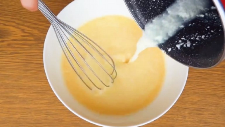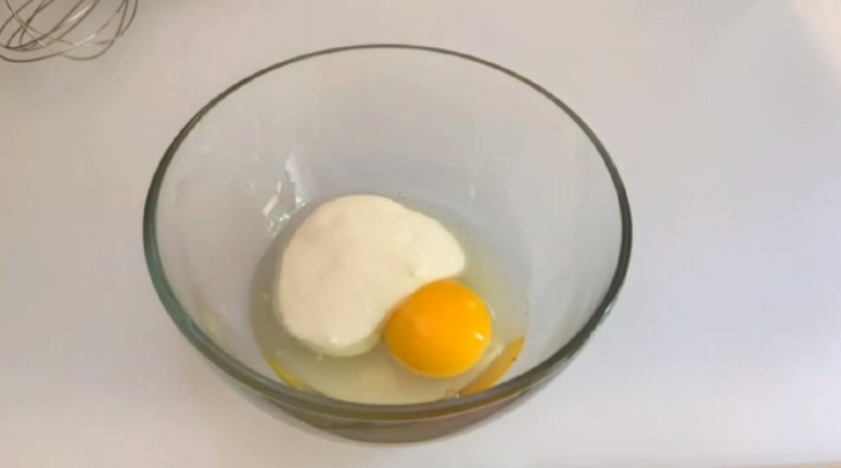 1. Яйце змішати з цукром. Збивати не треба, достатньо їх просто з’єднати.