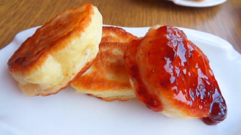 5. Оладки виходять високими і дуже легкими, з пористою структурою. При подачі їх можна полити сметаною, а для ласунів – варенням.