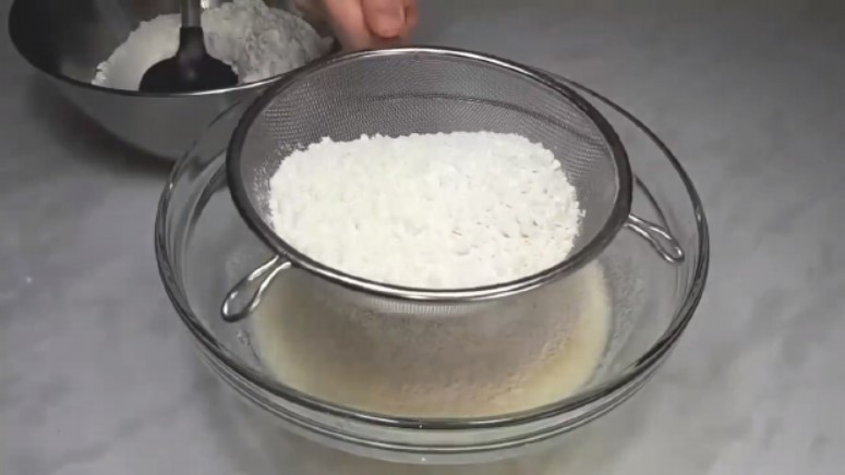 2. Просіяти борошно в миску. Замісити туге тісто.
