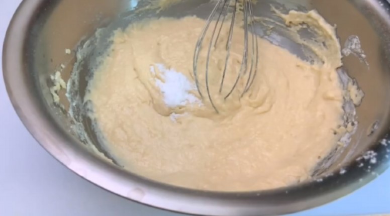 2. Додати в тісто інші продукти, змішати з допомогою віночка так, щоб не залишилося грудочок.